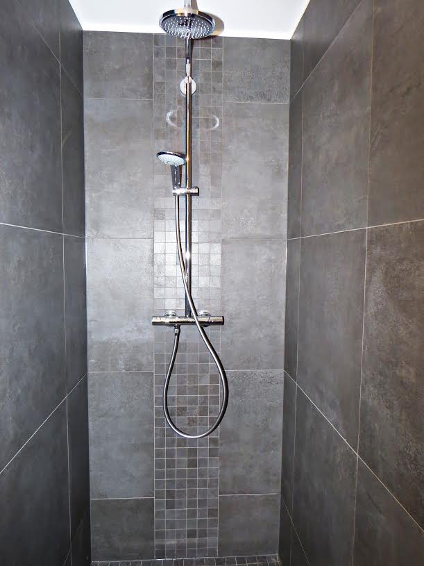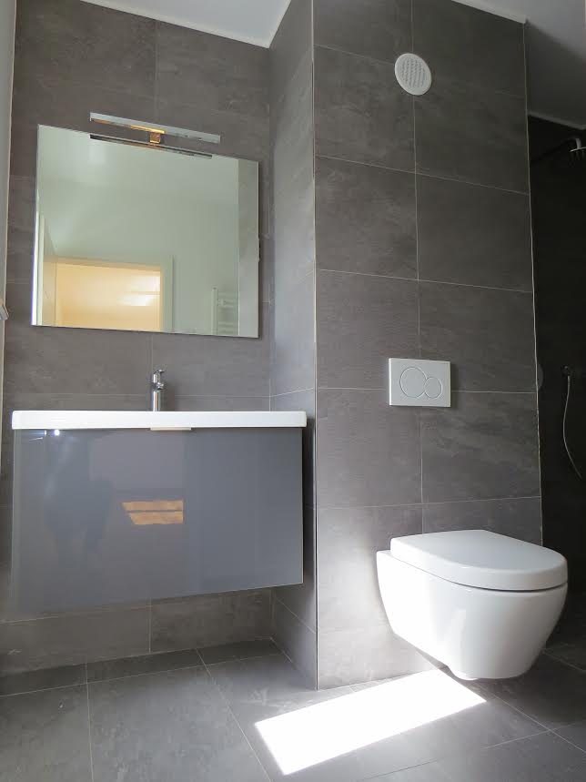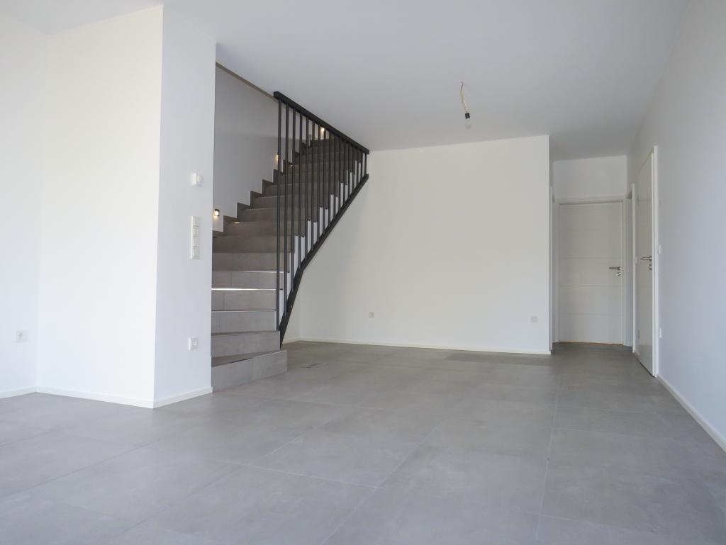 - Rdch : entrée, living ouvert sur cuisine équipée et la salle à manger avec l’accès vers la terrasse et le jardin privatif, chambre à coucher, bureau /chambre d’enfant et salle de douche avec douche italienne